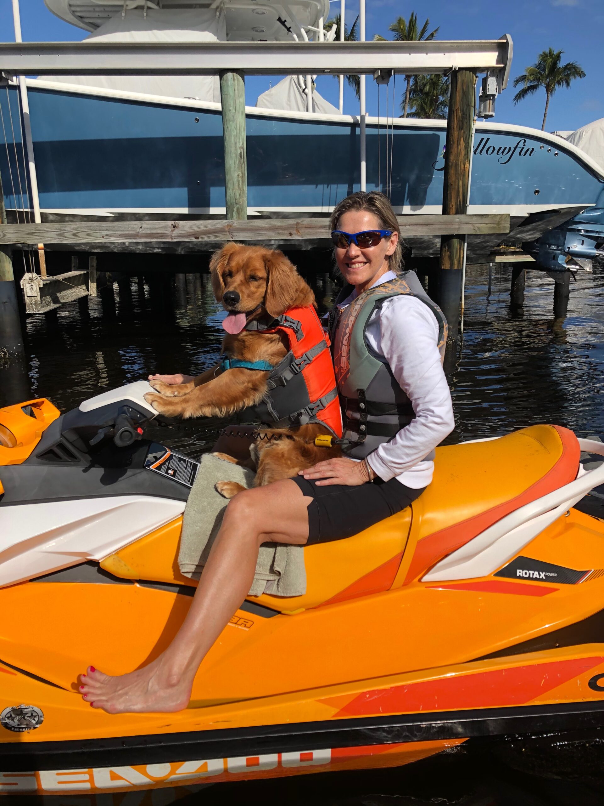 Tank doesn’t seem too concerned about anything these days…He is living it up! He loves jet skiing with us. We take him to the dog beach so that he can play with all the other doggos ! He loves the pool…anytime we take him for a walk he immediately goes out back for a refreshing dip. We’ve had some hot days!! I don’t know what we’d do without that pool. He has met so many dogs in our new neighbourhood and has made his presence know to the humans with his charming personality!