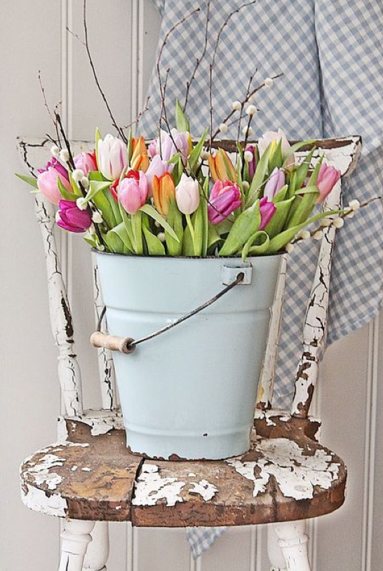 Wellā¦.as soon as I find some decor I can start!! LOL. I have SO many boxes to unpack. Ā I have very little furniture at this point, and no vignettes Ā set up yet. I have some faux florals that I will place in the powder room and in the kitchen as well. I love fresh tulips. They immediately add spring to any room where you place a vase or large bucket of them. Tulips and daisies are my happy flowers. š