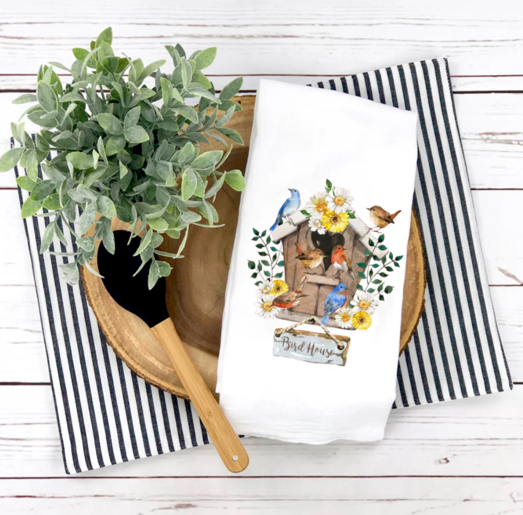 There is nothing nicer in the bathrooms than fresh, white towels with pastel details. I am adding a light floral scented soap in the powder room. For the kitchen sink I like to use grapefruit scented soap from William Sonoma. Arenāt these tea towels beautiful? Available on Etsy.